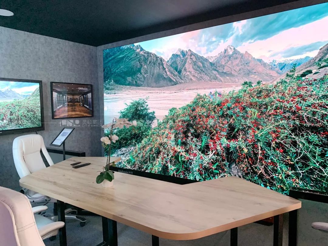 靈碩大化利用了展臺的空間,合理規劃出雙層展臺,并設置了靜謐舒適的vip洽談區及會議室,規避了大廳洽談區的嘈雜,為洲明科技的重要客戶的洽談及戰略會議提供了極大的便捷。